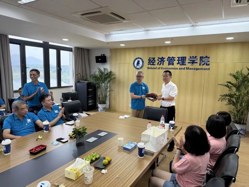 座谈会现场播放了校友们精心制作的毕业30周年纪念视频。在AI动态技术的赋能下,一张张老照片焕发新生,跃动于屏幕之间,带领大家穿越时光,重温那段奋斗如歌的青春年华。交流环节气氛温馨而热烈,与会校友踊跃发言,远在国外和异地的校友也通过视频连线“云相聚”,分享各自三十年来在不同行业领域的成长轨迹与人生感悟,深情回顾在校求学时光,表达对母校栽培的感激之情,也对学校和学院的快速发展感到自豪。校友们参观了经济管理学院实验室,共同回忆当年的学生生涯,共同追忆当年金工实习、机械制图、焊接热处理实验、一个月船厂实习的热闹场景,感叹学习时代的跨专业学习经历丰富了视野,为以后的个人职业发展拓宽了道路。